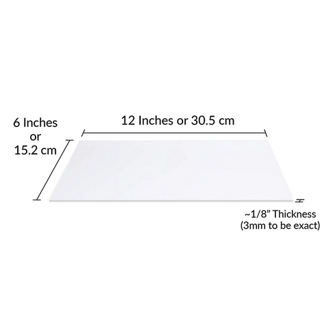 Small Rectangular Frame & Enhanced Durability – SimbaLux® heavy-duty plexi glass panels are tougher than standard glass with about 0.125" (1/8 inch) or 2.7mm to 3.3mm (3mm nominal) thickness that offers better indoor and outdoor resilience. Sized at 6 inches by 12 inches, these versatile acrylic plastic sheets can be used as is or cut to suit almost any job.