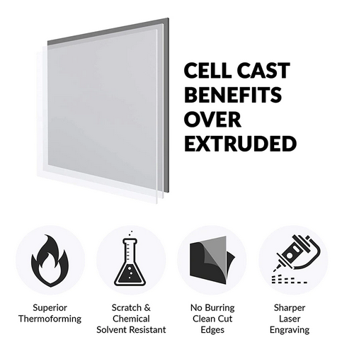 Easy to Cut and High-Quality Cell Cast Design – With no melting point, cutting through our thick acrylic boards with a laser, tablesaw, jigsaw, drill, router, or bandsaw is quick and easy. The cell cast version offers clean cut edges without burrs, sharper laser engraving, higher resistance to scratch and chemical solvents.